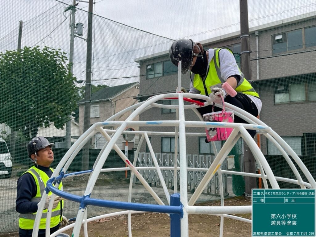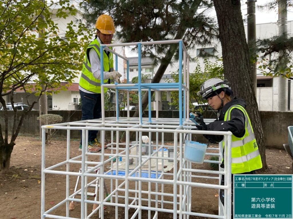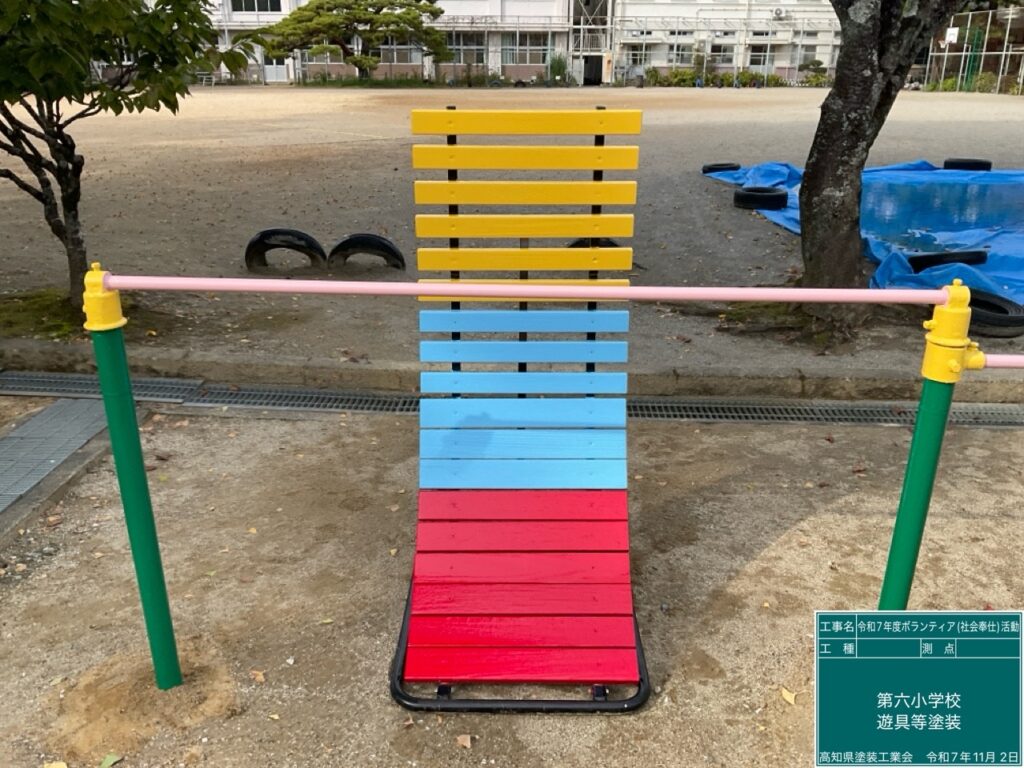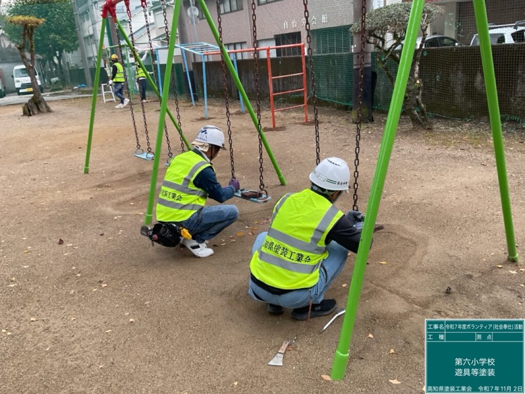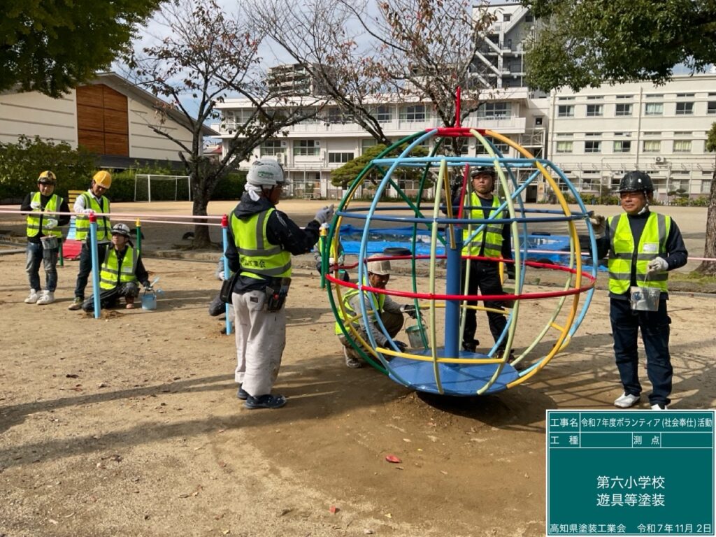 令和7年11月2日(日)に高知市立第六小学校の遊具を総勢26名の参加でボランティア活動を行いました。