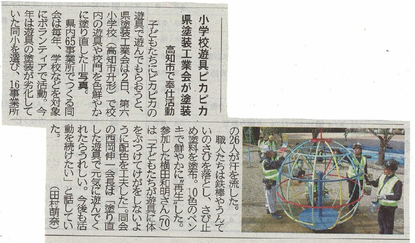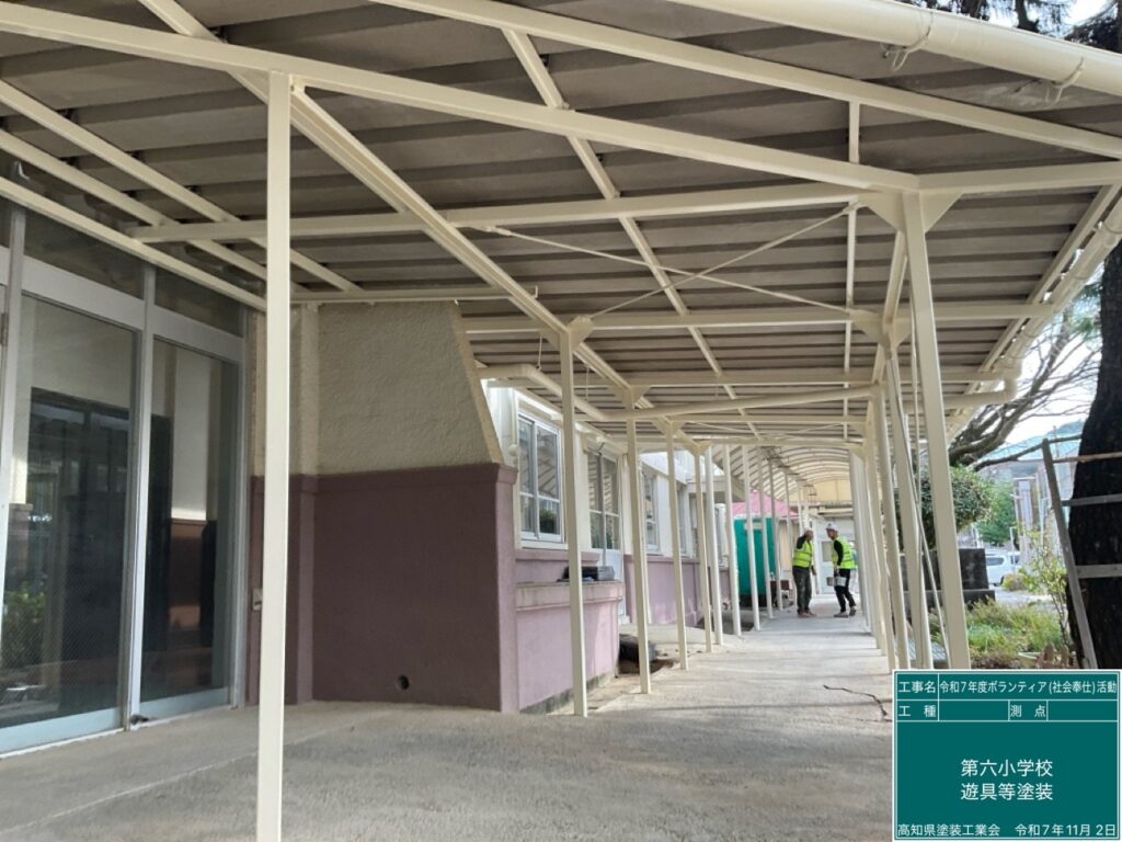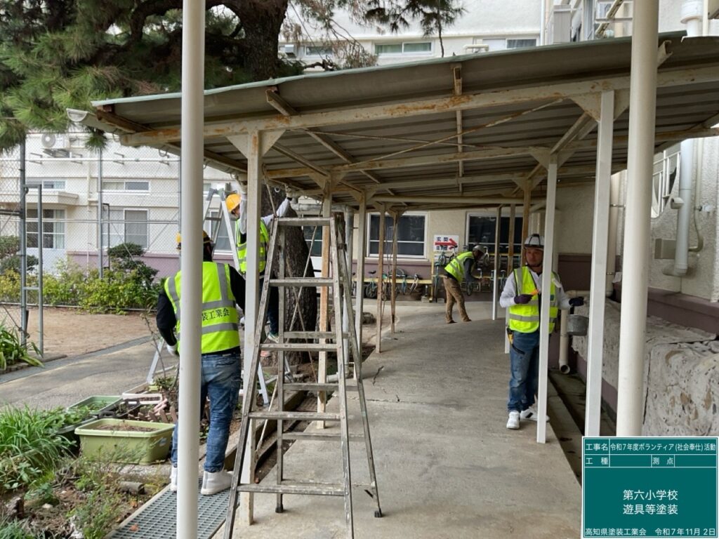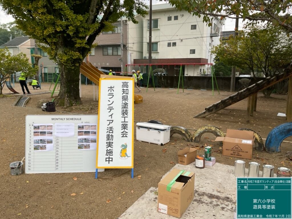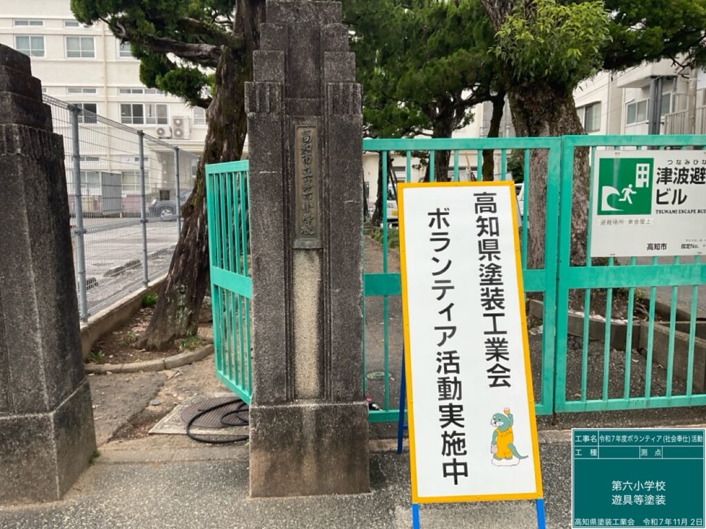 令和7年11月2日(日)に高知市立第六小学校の遊具を総勢26名の参加でボランティア活動を行いました。