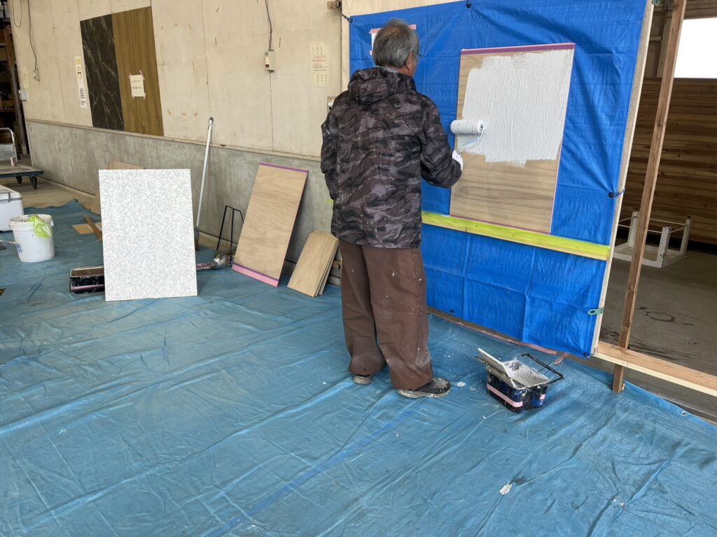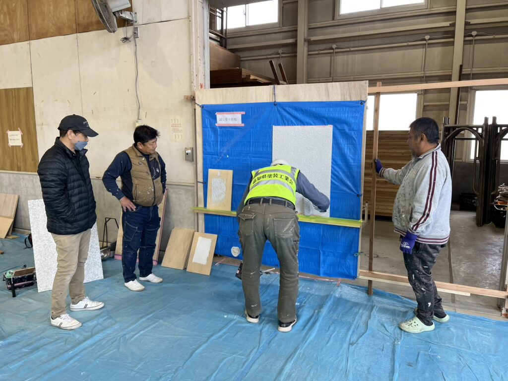 来年度より吹付作業をローラー作業に変更することに伴い方法や流れ等を勉強してきました。